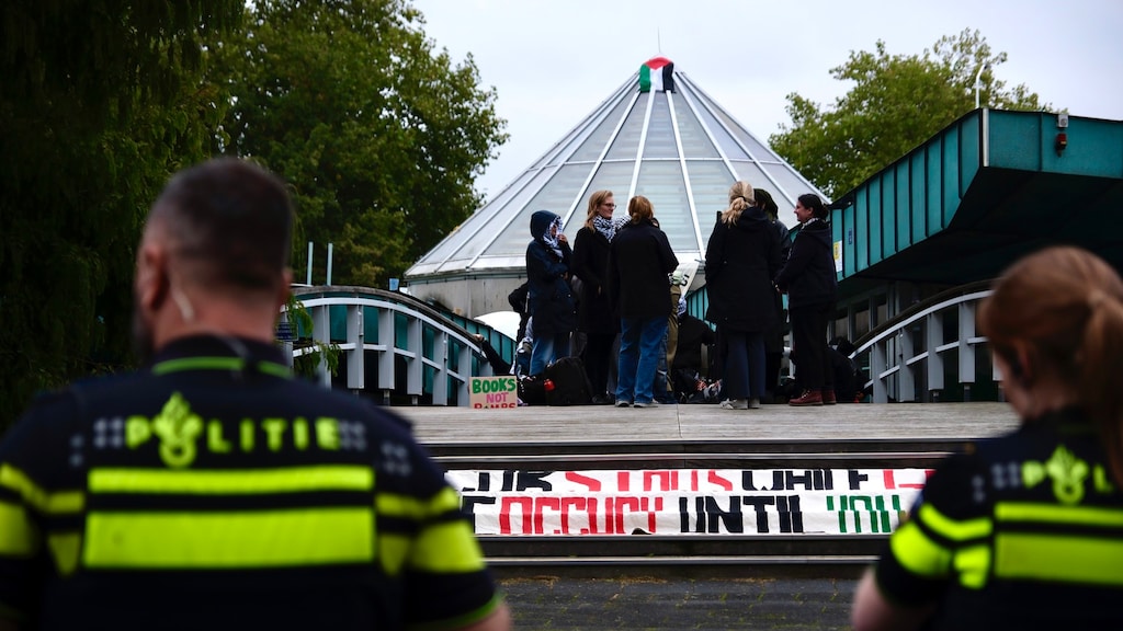 De bezetters demonstreren tegen de banden van de Radboud Universiteit met Israëlische instellingen.