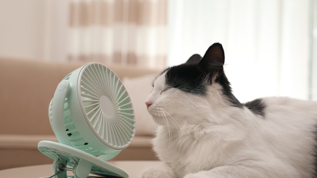 “Zorg voor koele ligplekken voor je kat, mét luchtverplaatsing”, tipt Piet Hellemans. “Denk dan aan een ventilator, zet de deur van je kelder of badkamer open óf zet twee ramen tegenover elkaar open.” Houd van tenminste één kamer de gordijnen of rolluiken gesloten en zet ventilatoren of eventueel de airco aan en zorg dat je kat deze ruimte op kan zoeken.